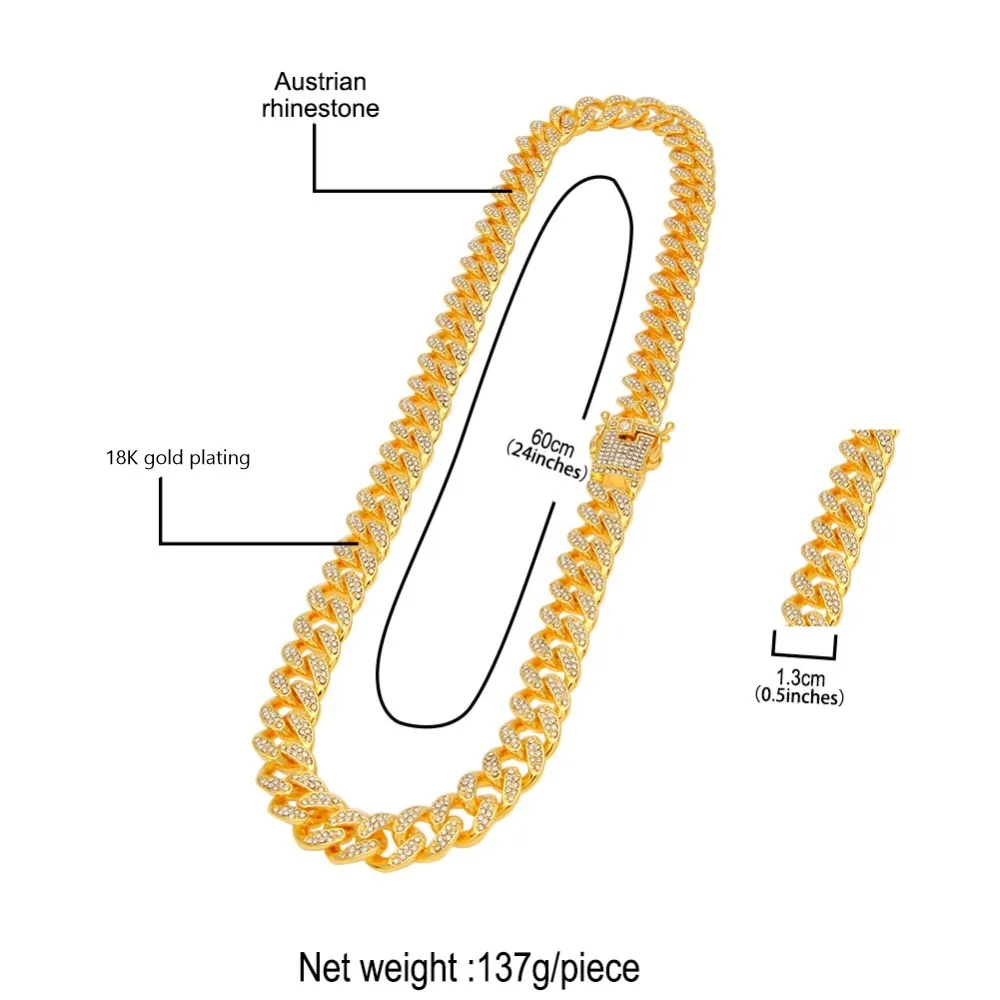 13mm Iced Out Cuban Necklace Chain Hip hop Jewelry Choker Gold Silver Rhinestone CZ Clasp for Mens Rapper Fashion Necklaces Link,Miami Curb Cuban Chain Necklace For Mens Gold Silver Hip Hop Iced Out Paved Rhinestones CZ Rapper Long Necklace Bangle Jewelry, Miami Curb Cuban Chain Necklace For Mens Gold Silver Hip Hop Iced Out Paved Rhinestones CZ Rapper Long Necklace Bangle Jewelry